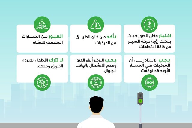 إرشادات المرور السعودي قبل عبور الطرق بالمملكة