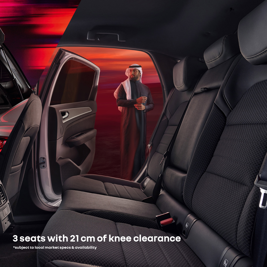 وقدمت السيارة بالسعودية في فئات تكنو وايفوليوشن واسبيريت ألباين وزودت أول فئتين بأنظمة مختلفة ومتنوعة تشمل نظام ملاحة متطور ونظام ترفيه رينو ايزي لينك مع اندرويد أوتو وأبل كار بلاي كما تزود الفئة الأعلي مع لمسات رمادية ساتان في الاكصدام الأمامي وجناح خلفي بلمسات خاصة وعجلات 18 بوصة. كما تشمل تجهيزات السيارة الداخلية شاشة ترفيه 9.3 بوصة ونظام صوت مع 6 سماعات وتشغيل المحرك بضغطة زر والدخول بدون مفتاح ومقاعد في الأمام بسخانات وتبريد وطي للمقاعد الخلفية.
